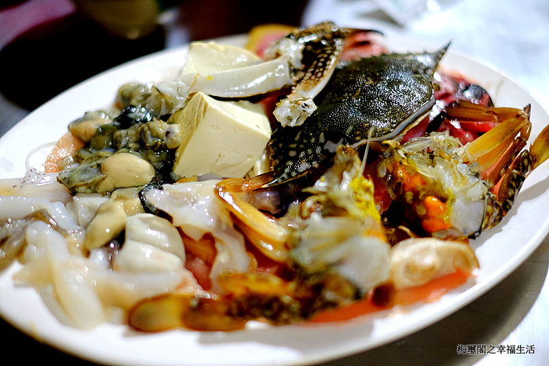海鮮鍋是500元新臺幣一份,包括拼盤,送的蝦,送的捲心菜,按人頭的雞蛋,鍋底,調料,這價錢,估計在上海衹能喫到那五個蝦。