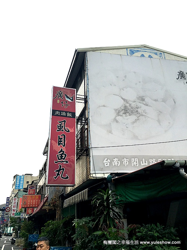 我住的地方——馬公綠町民宿,前面的大路是開山路,一百多米外,有一塊大的山墻,上面有一幅已經褪了色的廣告,那是一碗魚丸湯,右邊,竪向寫着「廣仔虱目魚水餃」,左邊則是一個鮮豔的燈箱,紅底的白邊黑字,寫着「廣仔肉燥飯虱目魚丸」,我們回來的晚,从來沒有看到店開着開。