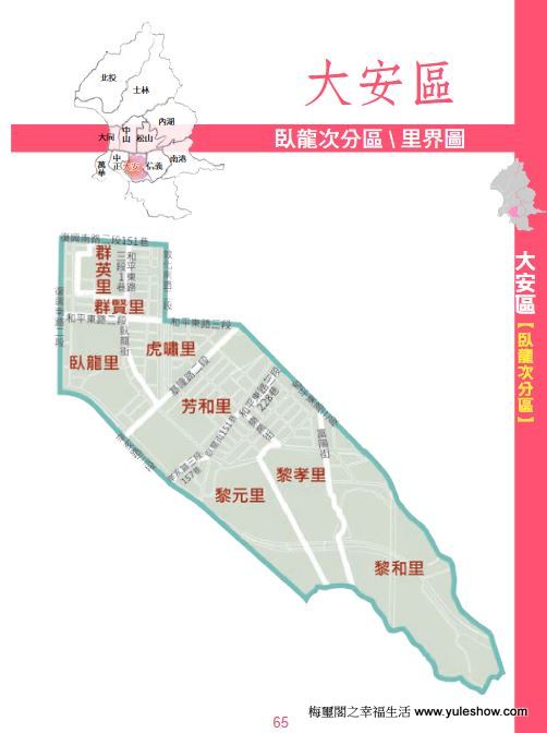 我上網查了一下,臺北共分十二個區,總共有68個次分區包含456個里,這個「里」與上海的「里」是不一樣的,上海的里,通常是一條衖堂,就象我在北京西路的家,就是「平和里」。臺北的里,是一種是臺南的境差不多的概念,它往往是由幾個街區組成的,我看到的那個「群賢里」是大安區的,隸屬於臥龍次分區,是一個「凵」字形的里,當中凹下去的地方嵌着「群英里」,臥龍分區總共有八個「里」。
