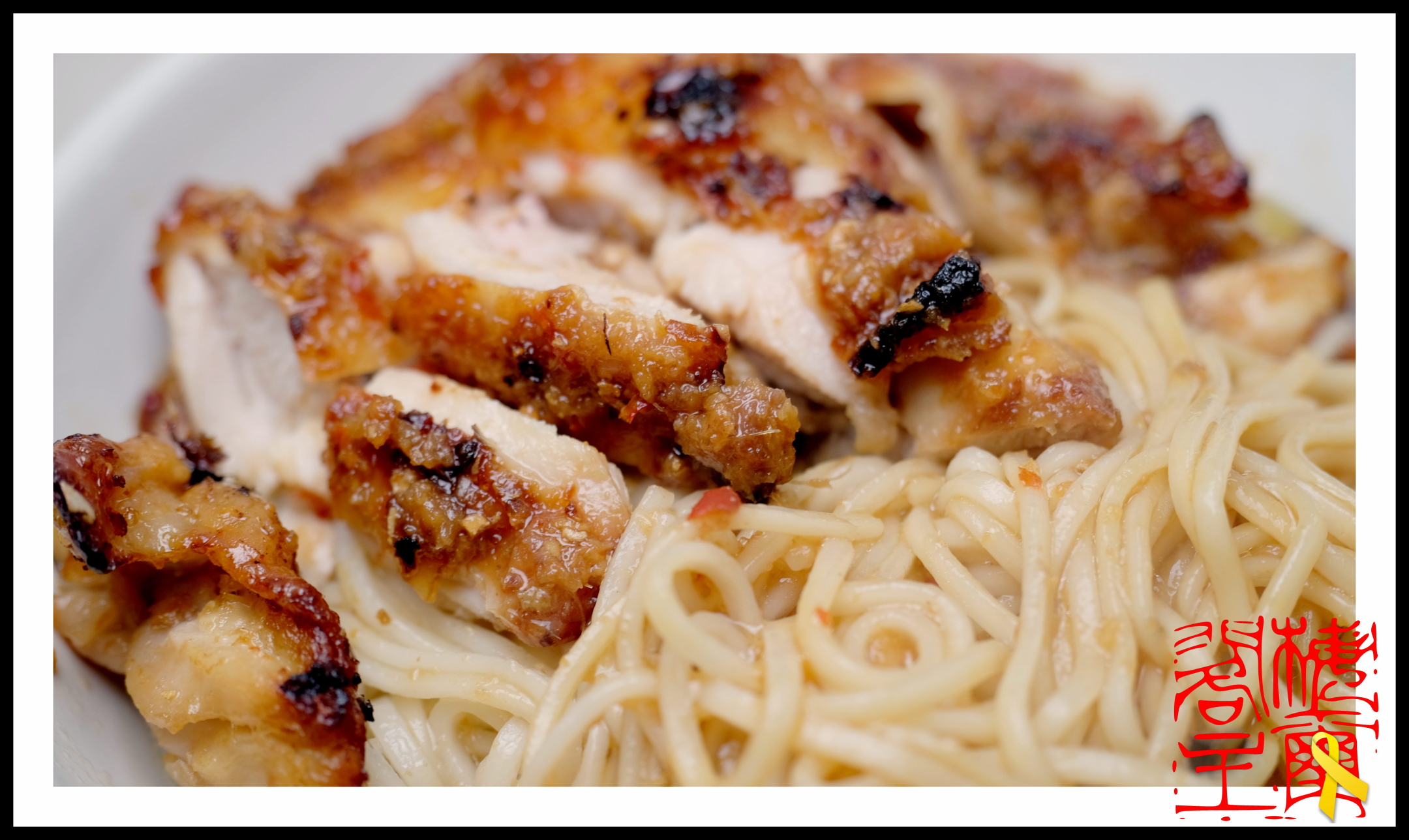 11月10日,中飯:昨天烤了五塊雞三角,剩了一麵,今後複烤了一次,煮了麵,醬汁拌麵