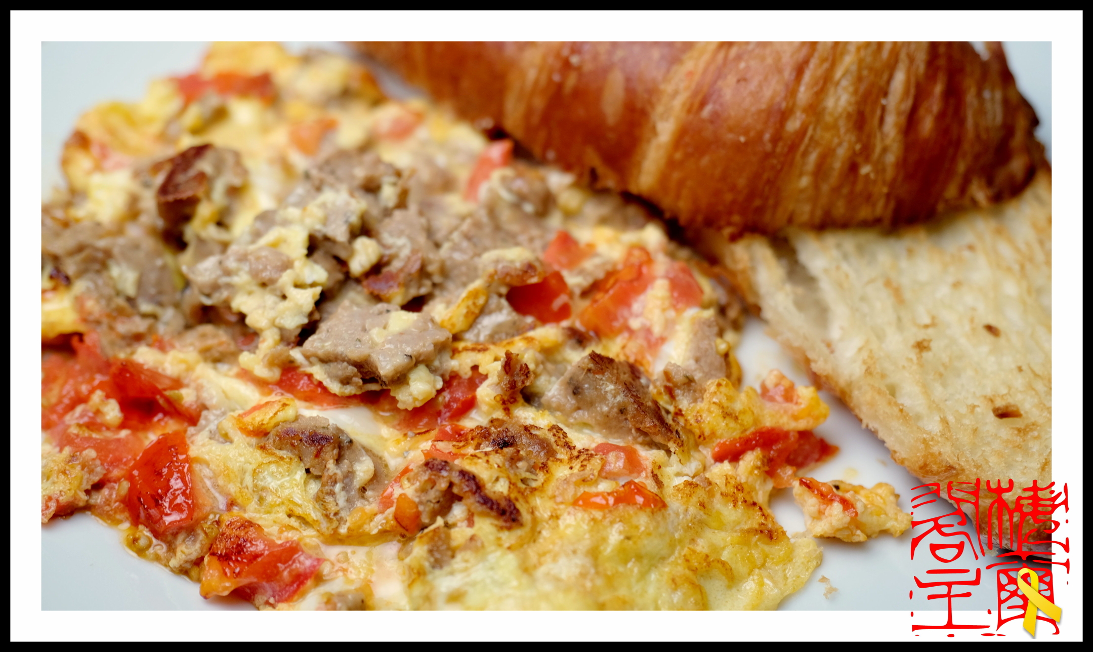 11月15日,早飯:炒蛋配羊角麵包-Jimmy Dean® All Natural Fully Cooked Pork Sausage Patties 肉餅二枚、Sunset Brands Campari Tomatoes 番茄二枚、Kraft Singles American Cheese 起司一張、雞蛋二枚,Kirkland Signature Butter Croissants 羊角一枚,牛奶咖啡- 11月14日,夜點心:Kirkland Signature Butter Croissants