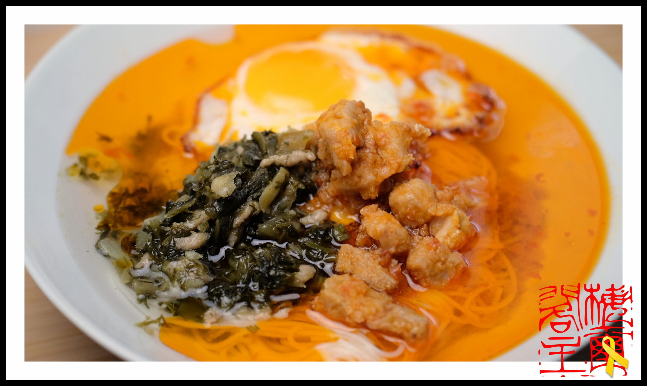 11月16日,早飯:辣肉麵一碗、加鹹菜肉絲、加荷包蛋