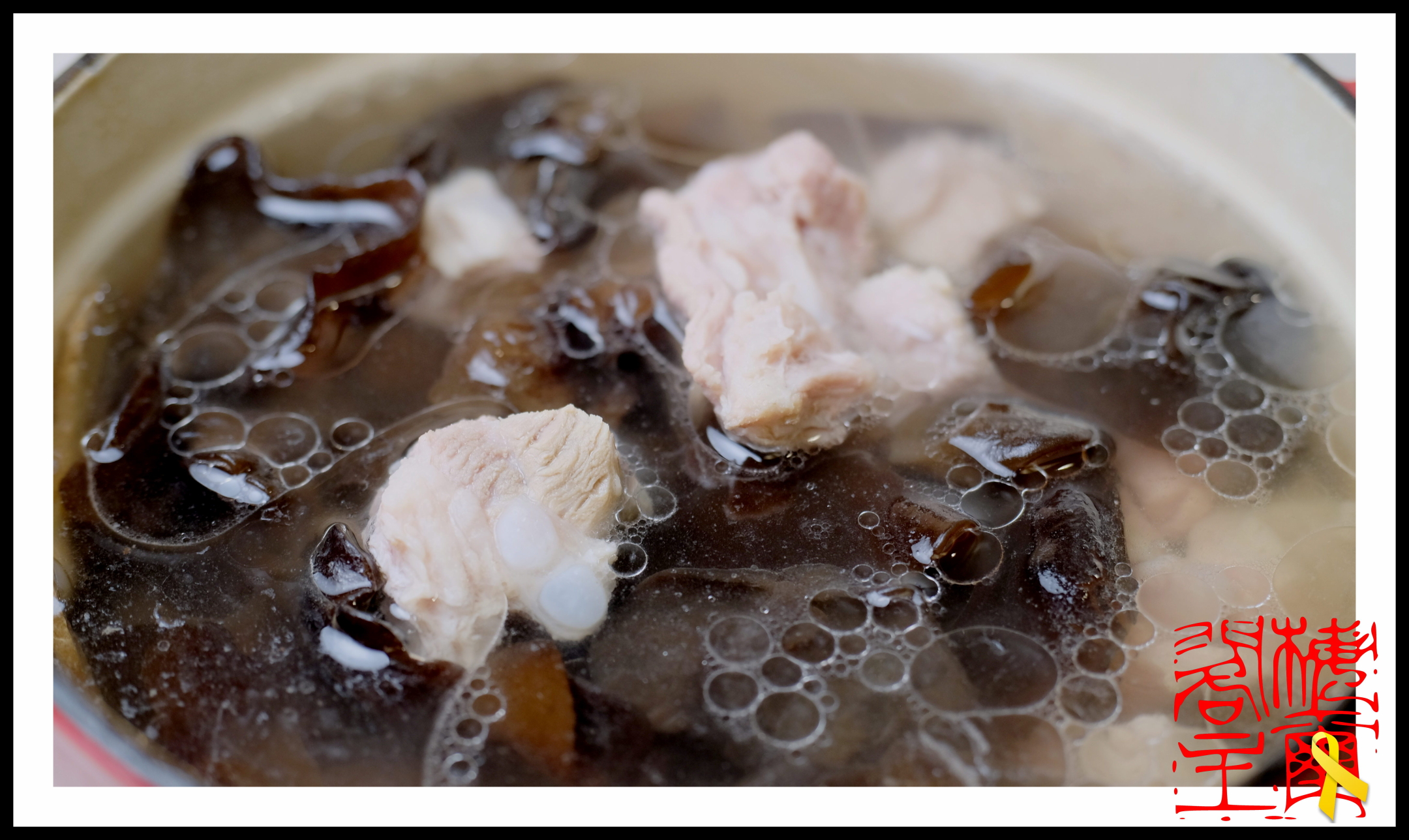 11月17日,夜飯:肋排/軟骨黑木耳湯,(剩)酸醃菜炒肉末,(剩)大蝦粉絲煲