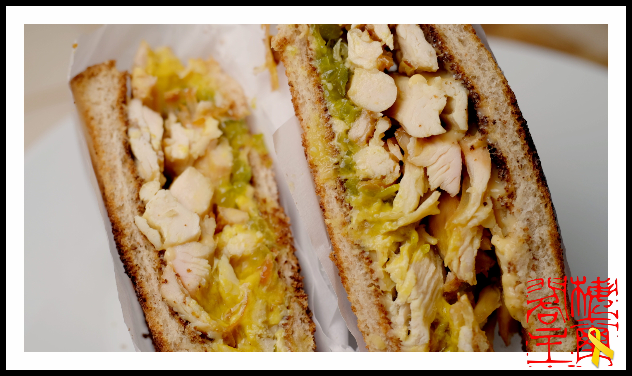 11月27日,早飯:烤雞三明治-Alfaro’s Artesano Golden Wheat Bakery Bread 二片、Kraft Singles American Cheese 起司二張、Kirkland Signature Rotisserie Chicken 烤雞、Heinz Sweet Relish、Heinz Yellow Mustard