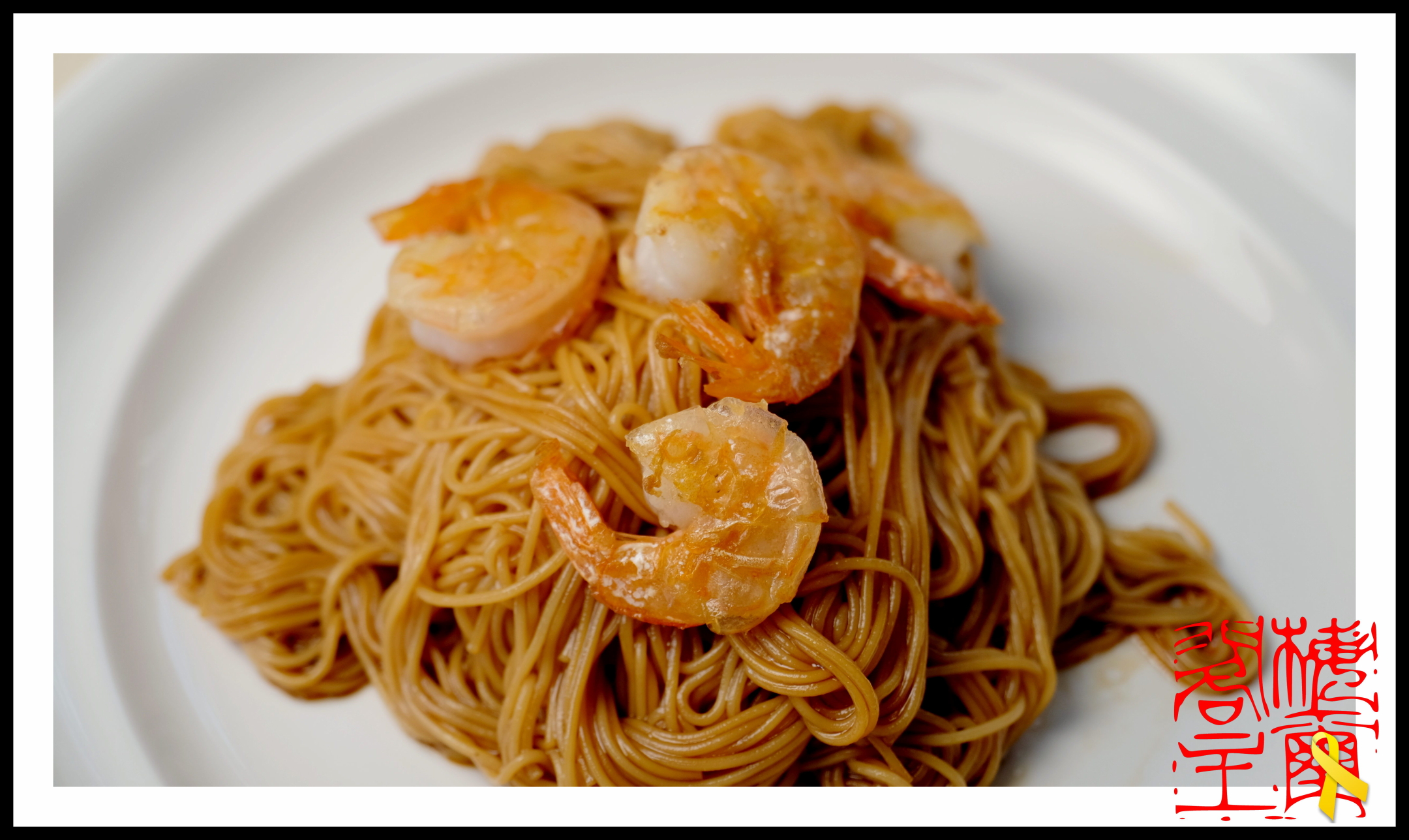 11月30日,中飯:蔥油拌麵+乾煎大蝦