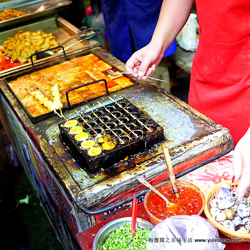 最要命的事,這回不但帶了小豆子,還帶了我那從來沒吃過排檔的老爹和萬事挑剔的老娘來。從湖北省博物館出來,直接打了車到戶部巷,在吃了一份豆皮之後,夜攤的大軍就出來了。當場把老爸嚇得「魂飛魄散」,兩人立刻「落荒而逃」,與我們打了一個招呼之後,飛快地上了出租回賓館點菜吃飯去了。