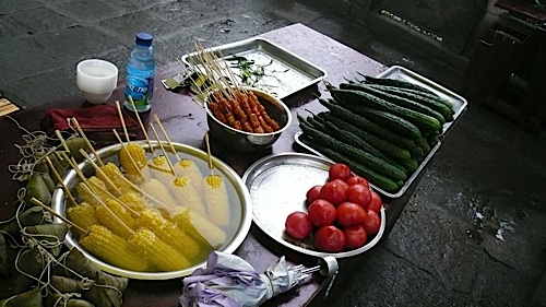 半山腰,有塊小場地,兩個籃球場見方,是上山的必經之路。場地中央,放著兩隻灶頭,上面是平底鍋,煨著一鍋小小的洋山芋,一鍋不知名的點心。我有點餓,其實我更冷,但我始終不覺得洋山芋能讓我熱起來。