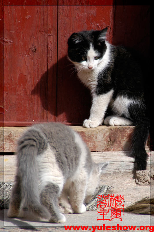 兩隻小貓很可愛,小豆子和Sam蹲在那裡看著玩,時不時也還拍上幾張照。後來,老貓(滬語指小貓的「家長」)也來了,於是貓咪母女三個,Sam母女兩個,在太陽下,享受著生活。我則遠遠地坐在太陽傘下,喝著紅牛、抽著煙……