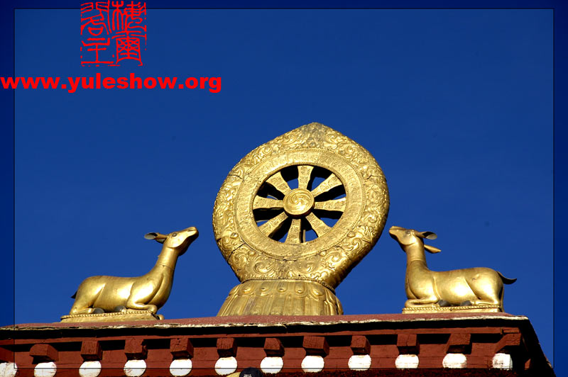 Jokhang屋頂上的雙鹿,雙鹿是佛教的一種象徵