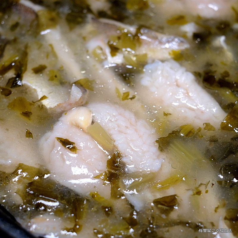 剩下的魚骨,剁成小塊,起油鍋,煸薑片,然後放入魚骨煎,待魚骨煎黃,加水燉煮,煮它個十五分鐘廿分鐘,都可以。然後找個湯鍋,把燉好的魚湯瀘去骨渣後放入,放入熟鹹菜,稍者後,將漿好的魚片一片片地放入,黃魚肉薄,待湯再次沸起,關火,撒白胡椒粉即可。