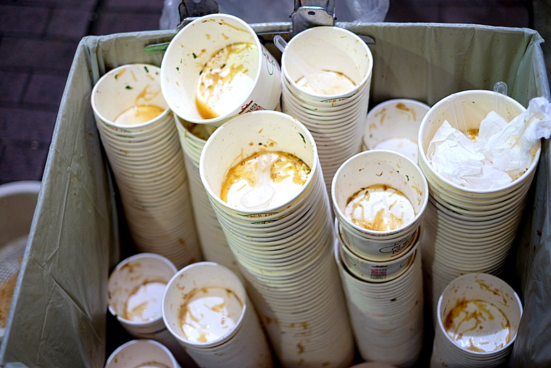 憑良心說,我還是第一次這麼喫東西的,我曾經在昆明的米線店外把酥肉和滷菜放在欄桿上,站在外面也就是街上喝酒喫菜,也曾在上海波特曼的樓下站着喫阿美生煎,但我从來沒有喫過一碗用「量具」盛給我的東西,除了夜店中的雞尾酒。